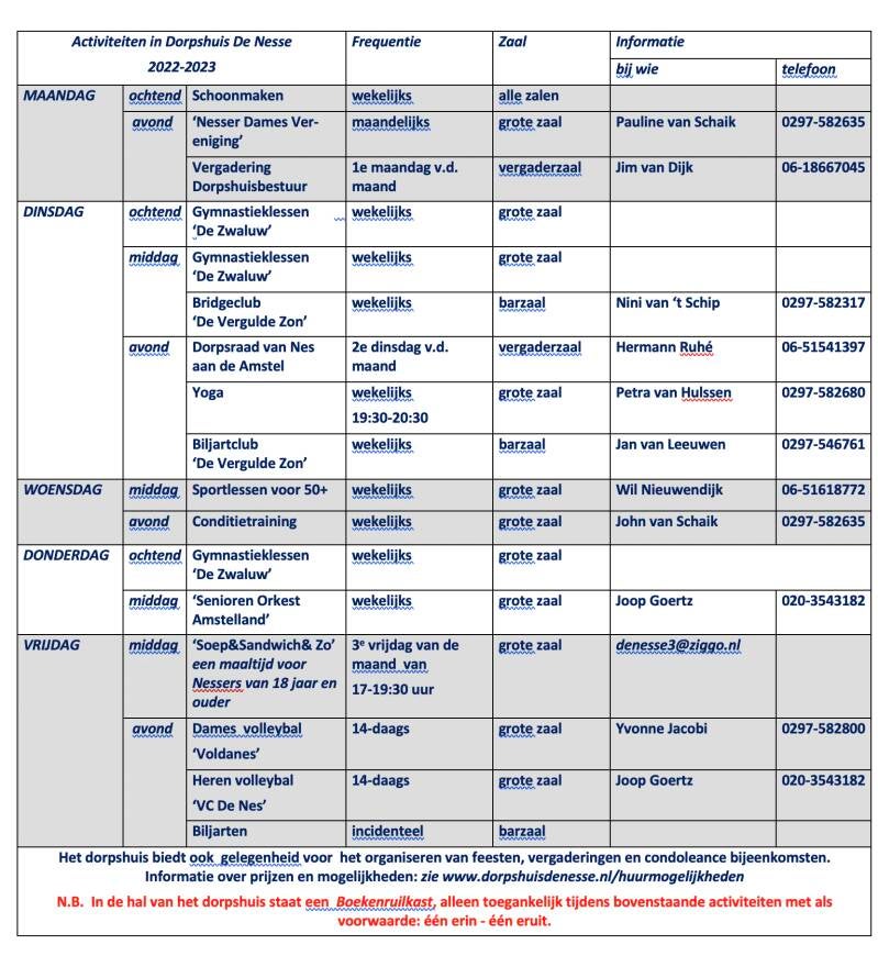Activiteiten in dorpshuis De Nesse