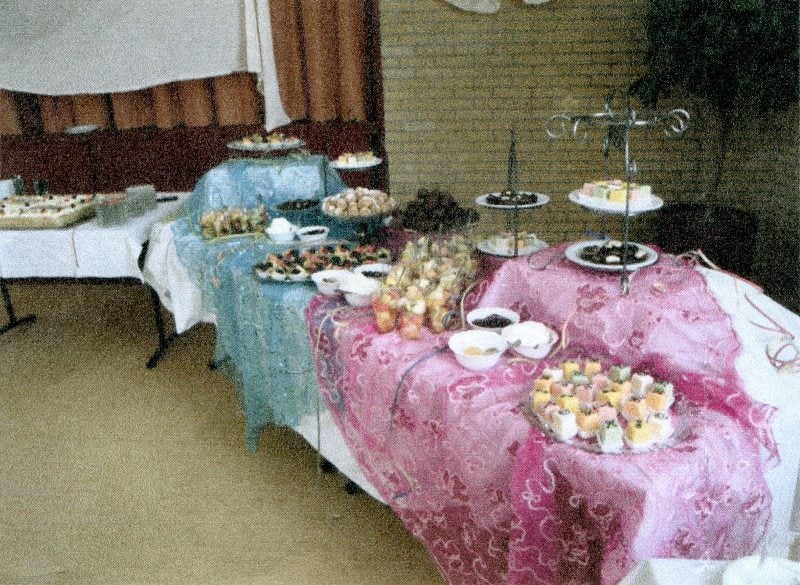 Koffie of thee (onbeperkt), koekjes, karaffen ijswater: € 5,00 per persoon.